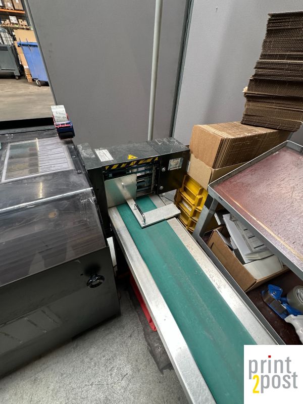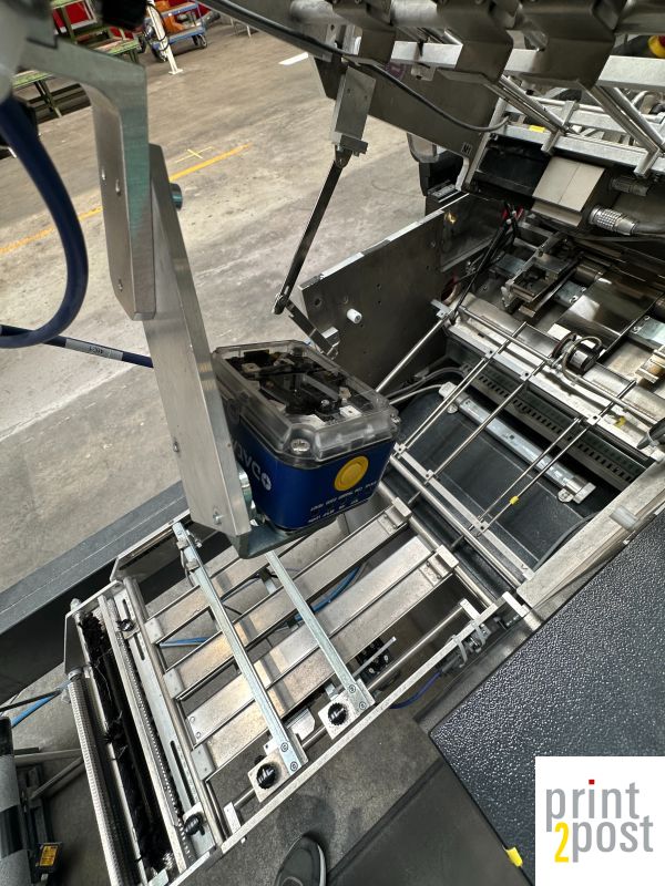 1 channel continuous pinless, 4 enclosures, 2x Datalogic reading form beneath for 2D Datamatrix