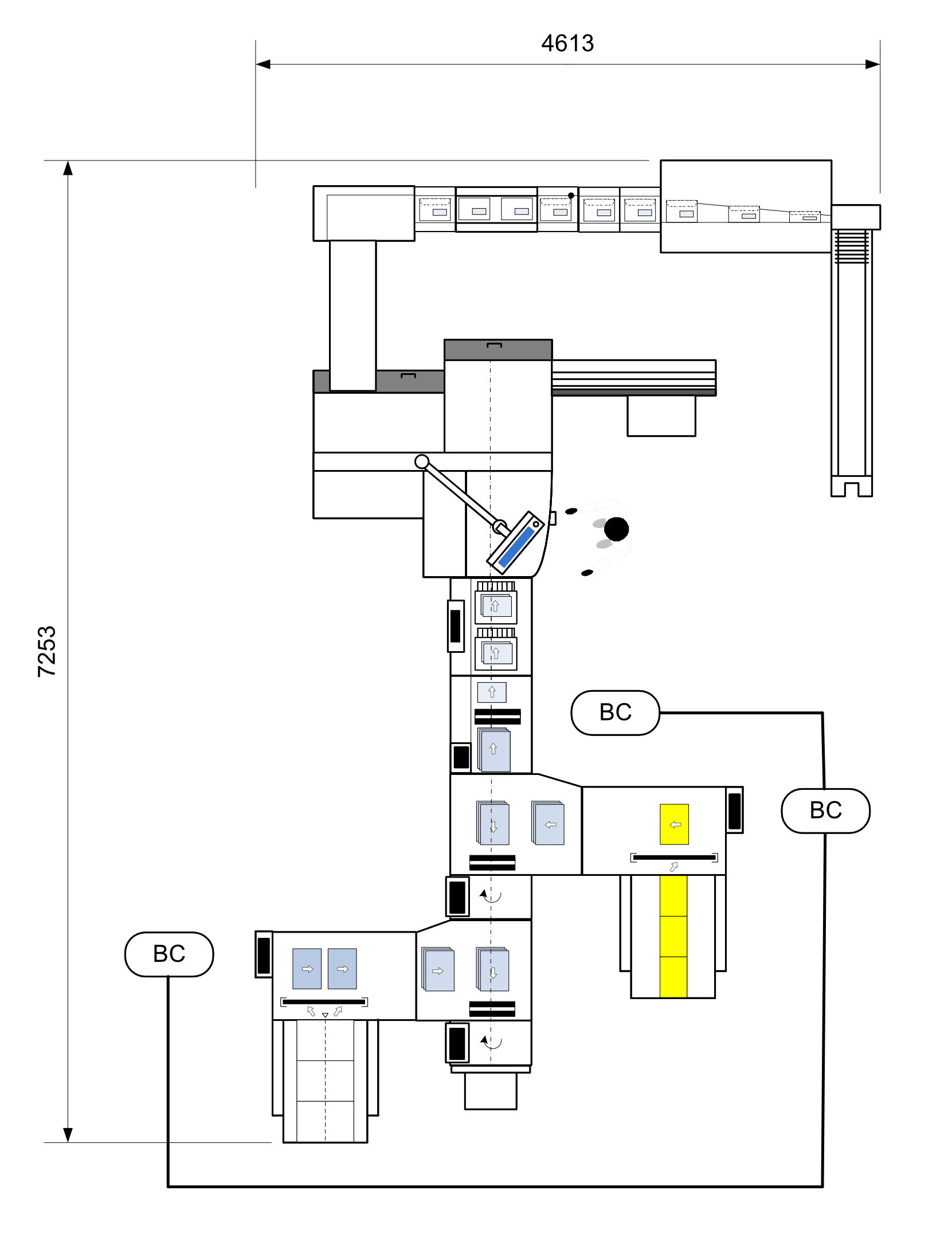long conveyor with vertical stacker, extra 2up slit knife for SIGR