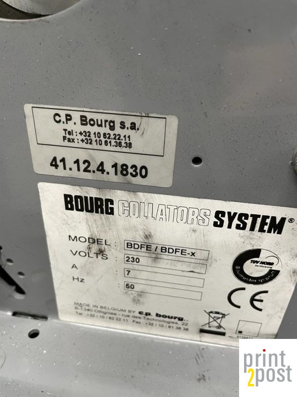 Bourg BSF Sheet Feeder and passes them to a Bourg BDFE Document Finisher or Bourg BME Booklet Maker